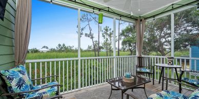 Enjoy a glass of wine on the screened in porch with beautiful views of the Bon Secour Wildlife Refuge.